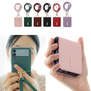 [갤럭시 Z플립7] 레인보우 스트랩 천연가죽 케이스